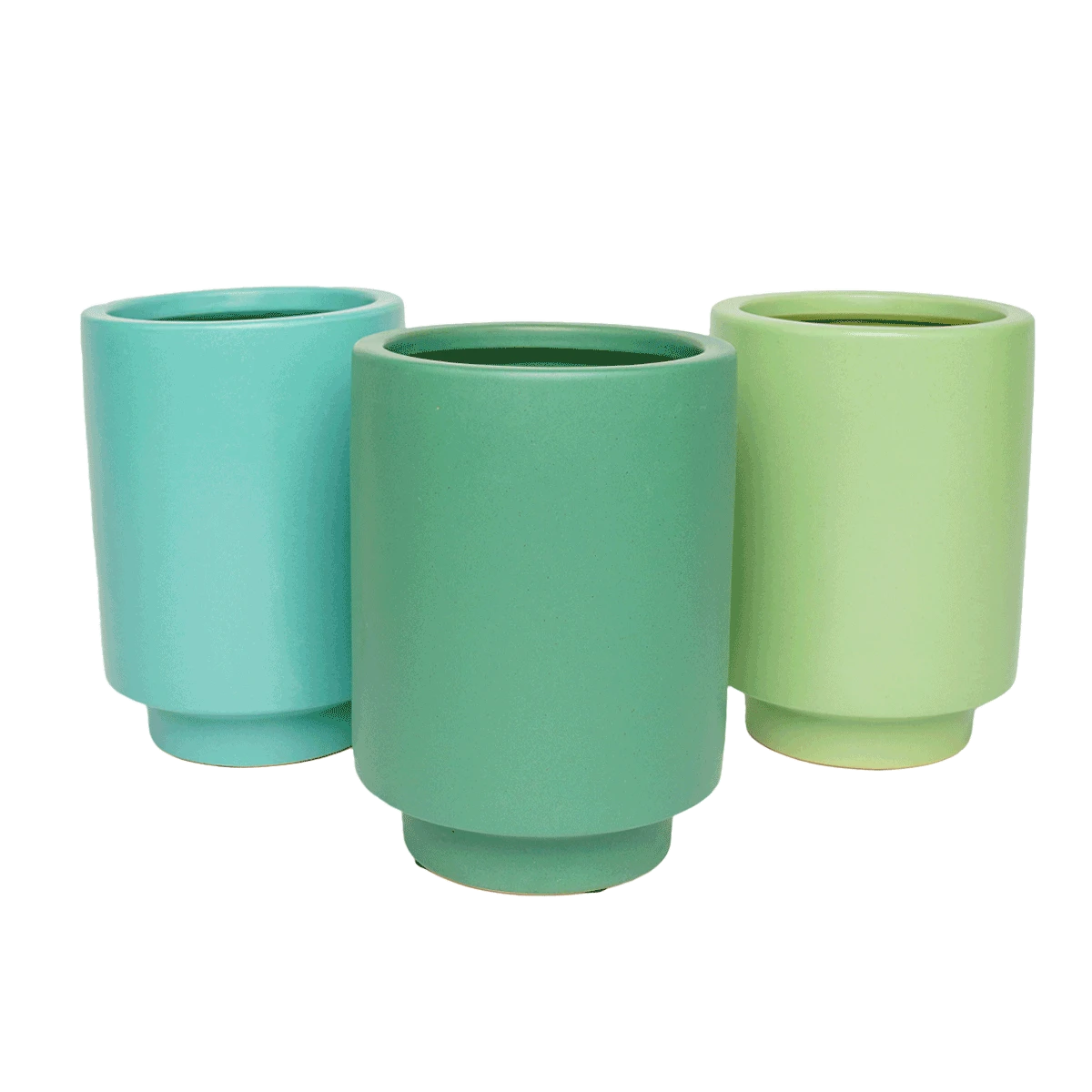 This tall, modern shape comes in an array of jungalicious hues so you can color block or mix & match to your heart’s desire. We love or tropical-inspired Caribbean Green that goes with any verdant plantie.