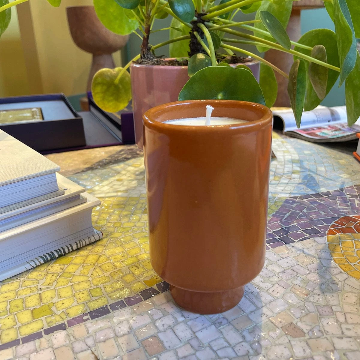 - Ceramic, Soy/Beeswax Blend, Cotton Wick